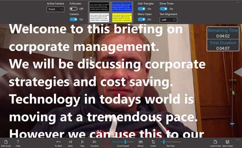 The teleprompter app for windows 10 lets you read a scrolling script that is visible only to you.